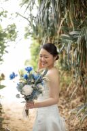 続いてソロショット!美しい花嫁さんと、青い海、赤いブーケが素敵です。
