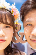おふたりの思い出のTシャツ。赤い色が優しい色のビーチに映えています✨