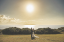 ビーチで座って、おでここっつん。ロマンチックな雰囲気の1枚に。