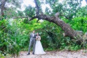 南国らしい大きな葉っぱのかげで、ぎゅっとくっつくおふたり。