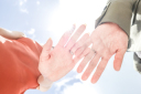 サンセットのオレンジ色の光に照らされながら、見つめあい。