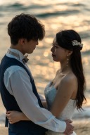 ビーチから海を眺めているおふたりの横顔を、横からぱしゃり!