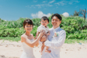 石垣島のリゾートな風景と、距離をあけて見つめあうおふたり。