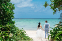 手をつないで、波打ち際をお散歩するおふたりの姿を。