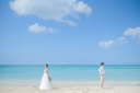 お仕度を終え、ビーチにて撮影スタート!!まずは、手をつないだおふたりの可愛い1枚を♡