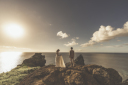 海を背景に立つおふたりと、石垣島の青がきれいな1ショット。