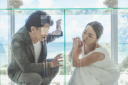 ぎゅっとハグして、お顔の距離を縮めるおふたり。ロマンチックな1枚に。