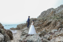 お仕度を終えて、ビーチにて撮影スタート!!ウェディング衣装に包まれたおふたり、絵になっています。