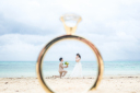 ぎゅっと距離を縮めて、海を眺めるおふたりのバックショット♡
