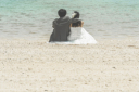 ビーチに残るおふたりの足跡と、歩いていくおふたりの後ろ姿。