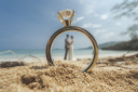 手をつないで、ビーチをお散歩するおふたり。ナチュラルなシーンも絵になっています。