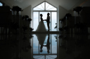 おふたりのイニシャルを使った撮影。遠近法を使ってユニークなショットに。