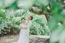 グリーンの中でぎゅっとハグするおふたり。ロマンチックです!