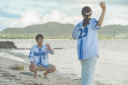 背中合わせで海を眺めるおふたり。石垣島の景色を楽しんで。