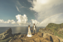 お仕度を終えて、撮影スタート。海を眺めるおふたりのうしろ姿。