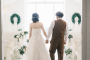 海を眺めながら、浜辺をお散歩しているご新郎ご新婦さま♡