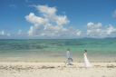 お次は、ビーチ撮影!青い海へ向かって歩いていくおふたりのうしろ姿を、ぱしゃり。