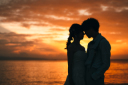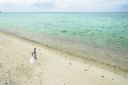 波打ち際をお散歩しているおふたりを、遠くからぱしゃり。