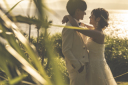 ビーチに座っているおふたりの姿をぱしゃり。素敵です!