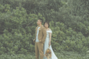 堤防の上で手を取り合って見つめあうおふたり。絵になっています^^