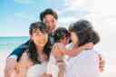 ビーチに座って寄り添い合って。なんだかロマンチックです。