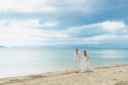 浜辺を散歩中のご新郎ご新婦さま♡おふたりのナチュラルな表情が素敵ですね