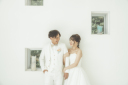 ぐっと寄り添い合って見つめあうおふたり。幸せが伝わってきます。
