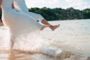 場所を変えて、サンセット撮影!!まずは、波打ち際をお散歩しているおふたりを。