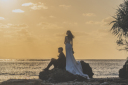 石垣島のビーチにて撮影スタート!!寄り添い合うおふたりをぱしゃり。