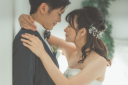 フォトフレームを一緒に持って、ぎゅっと寄り添い合うおふたり。