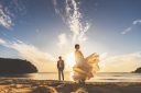 ビーチにて撮影スタート!!青い景色とおふたり、とても素敵です!