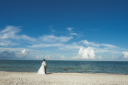 お仕度を終え、ビーチにて撮影スタート!!まずは、手をつないでいるおふたりのうしろ姿を。