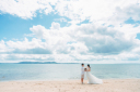 お仕度を終え、ビーチにて撮影スタート!!まずは、手をつないでいるおふたりのうしろ姿を。