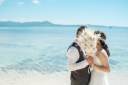 指輪とブーケを白い砂浜の上に置いて。小物だけの1枚を^^