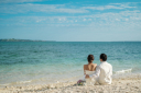 ビーチに座ってお話ししているおふたりのうしろ姿を、ぱしゃり!