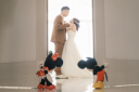 お仕度を終え、撮影スタート!ぎゅっと寄り添い合っているおふたりをぱしゃり!