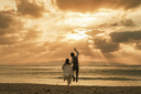 続いては、ビーチ撮影!!海を眺めているおふたりのうしろ姿、絵になっています。