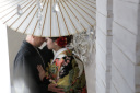 趣ある庭園で和傘と。紅葉も少し残っています。室内も撮れる泗水庵はおすすめです。