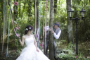 自然豊かなガーデンスタジオ。樹木をそのまま利用したブランコの前で、個性的な振袖姿を演出しました。