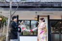 カメラマンがお2人からずっと離れた場所へ移動して撮影。古民家スタジオの全体が入るように撮影しました。