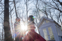 燃える紅葉の背景と新婦様の凛とした表情がとってもかっこいいです!