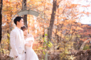 見上げた先の紅葉も、地面いっぱいに広がる落ち葉も、お二人を祝福するかのように輝いていました。