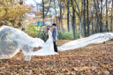 足元一面に広がる落ち葉の絨毯、宝石のように輝いています。しゃがみ込む新婦様がかわいいです♡
