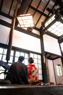 遠近法を使った可愛い一枚♪赤色の色打掛が映えて綺麗です。
