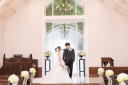 ベールに包まれた美しい新婦様とまっすぐに待つ新郎様。後ろ姿から固い決意が伝わってきます。