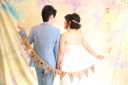 手作りのボードとイニシャルを使ってのショット!オリジナルの写真が撮れて良かったです!
