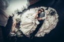 なんとも美しいショットです。お2人のシルエットと大きなシャンデリア。絵になりますね!