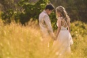 ロマンチックな抱っこショットをコスモスのお花畑で♡笑顔溢れるお二人が素敵です、末永くお幸せに♡