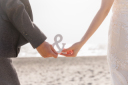 新郎新婦様とわんちゃんで白い砂浜をお散歩しているお写真が撮影できます!
