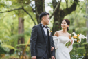お庭の緑の中でも撮影をしていきます。おふたりだけでお話ししてるところやお散歩してるところなど、自然の中にいるからこそおふたりらしい表情での撮影を♡
